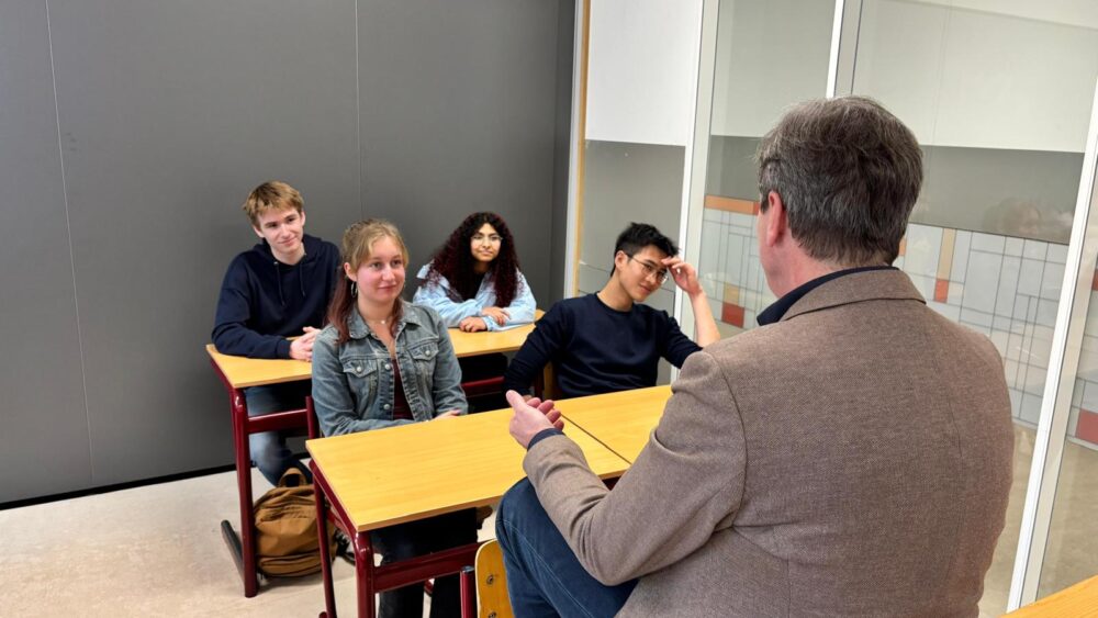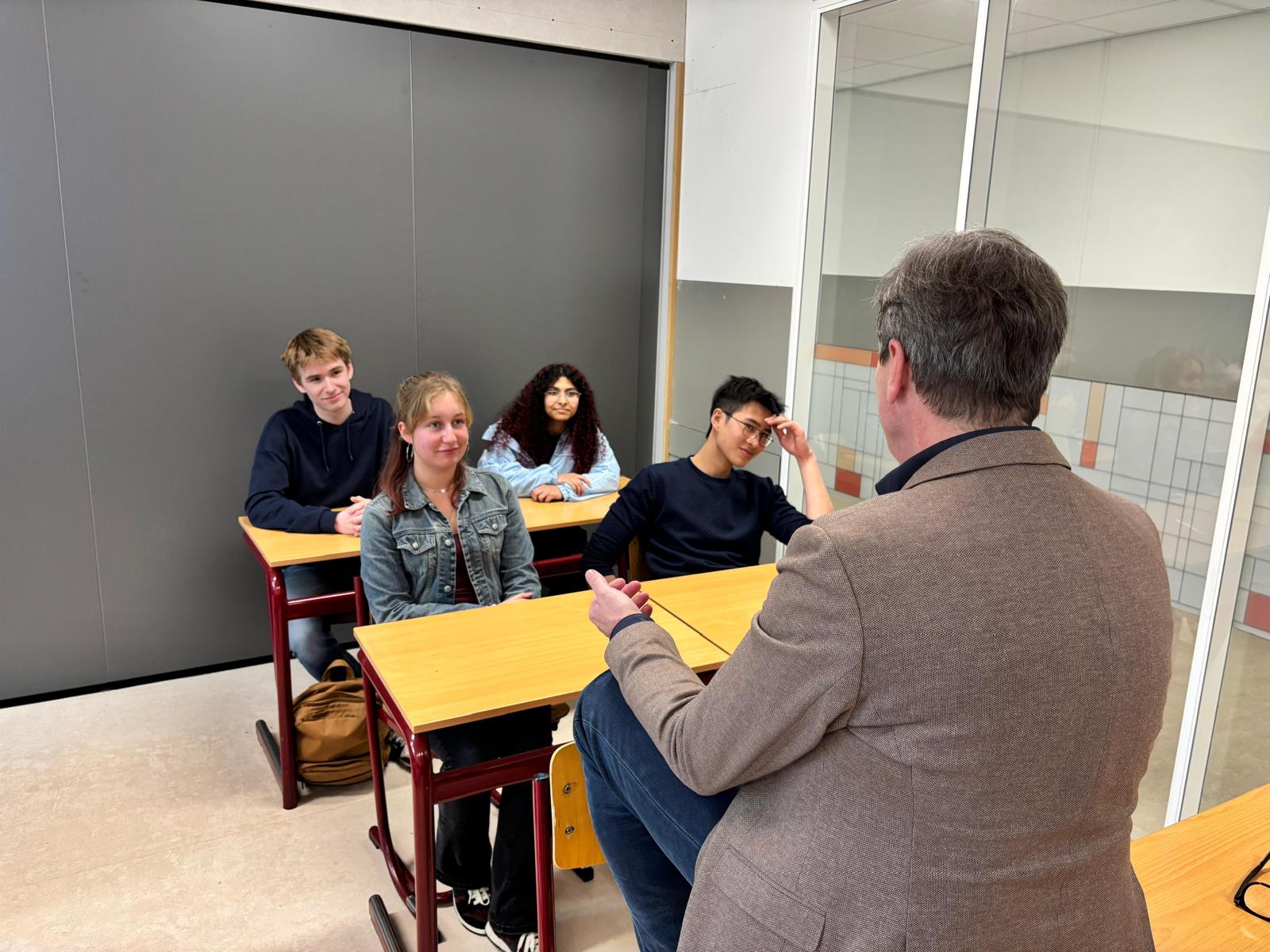 In lokaal 26 kreeg ANP-nieuwslezer Robert-Jan Knook de vraag wat hij nou het leukste vindt aan zijn vak. “Verhalen vertellen”, was het antwoord. Verder had Knook het advies aan leerlingen om vooral iets te kiezen wat ze ook leuk vinden, niet alleen wat het meest oplevert.